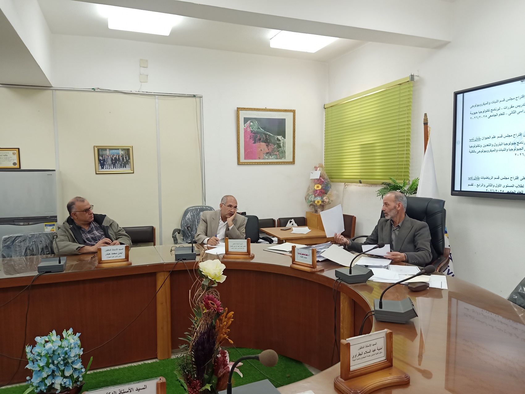 واستهل السيد أ.د/ عميد الكلية الجلسة بتقديم التهنئة للسيد أ.د/ حسن أحمد المرشدي لتعيين سيادته وكيلاً للكلية للدراسات العليا والبحوث والسيد أ.د/ طلعت عبد المنعم حجازي لتعيين سيادته رئيساً لقسم العلوم البيئية بالكلية.